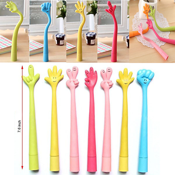 Very cute, useful and fashion design. Ideal to put it in your bag for daily or emergency use. The pen's ink is black.Interesing hand signs in multiple colors. Good helper in your life, smooth in writing.