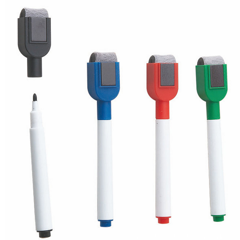 Rewritables mini dry-erase markers with magnetic, cap-mounted brush. This product is ideal for classrooms, small offices and homes, it can be used on whiteboards, glass and non-porous surfaces, this marker pen is with magnetic and brush, you can print your own logo on the pen. Customized design is welcome.