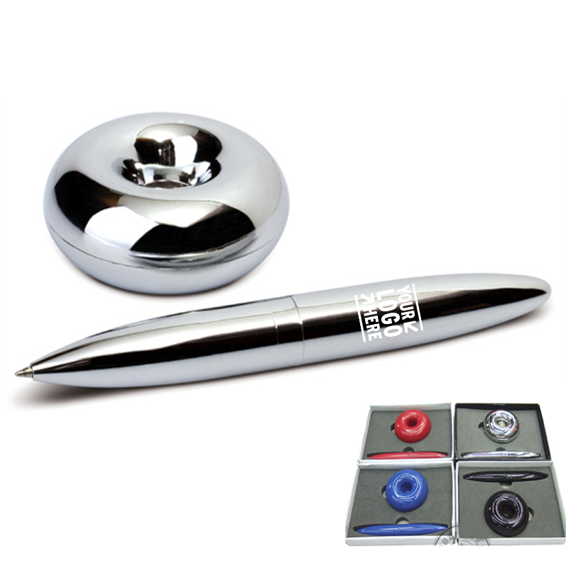 For a promotional giveaway that's sure to start plenty of conversations, look no further than this silver magnetic floating pen! Packaged in a black glossy gift box, this handy and mysterious product suspends upright on the magnetic base. It can be customized with a laser imprint of your company name, logo and more. Add a little science to your desktop! Custom logo is welcome.